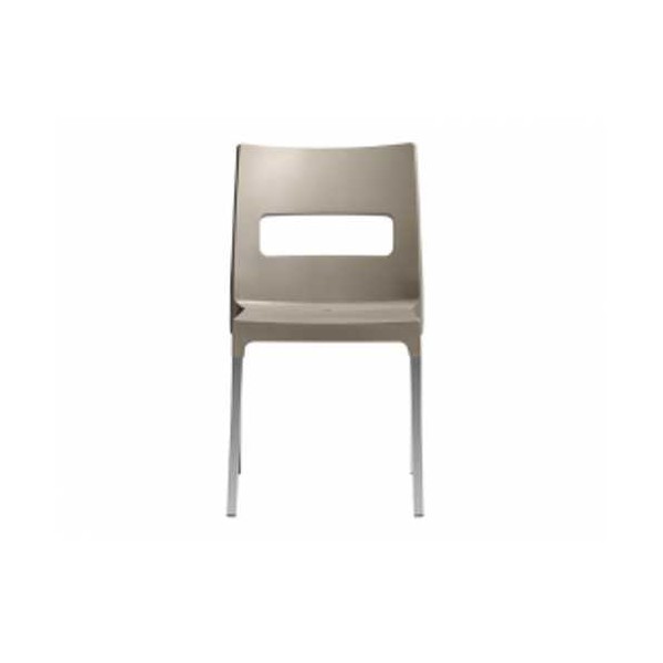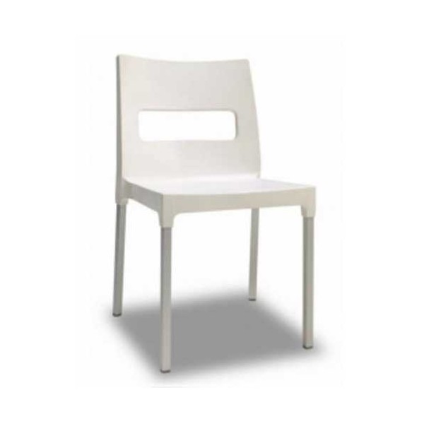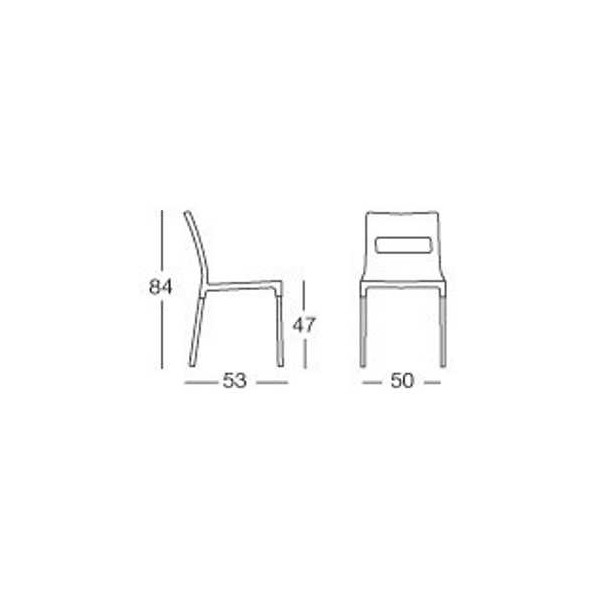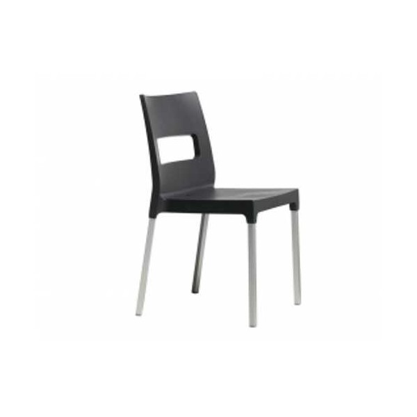 Stackable technopolymer chairs, extremely sturdy and stable, perfect for home, contract, and outdoor facilities. With its innovative design, it is the perfect seat for the living area.