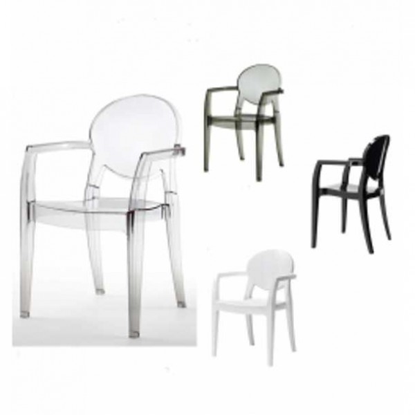 Stackable polycarbonate chairs, cheap and modern, for indoor/outdoor facilities. Suitable for garden, patio, home, bar, pub, restaurant, pizzeria, bakery, at the best value for money.